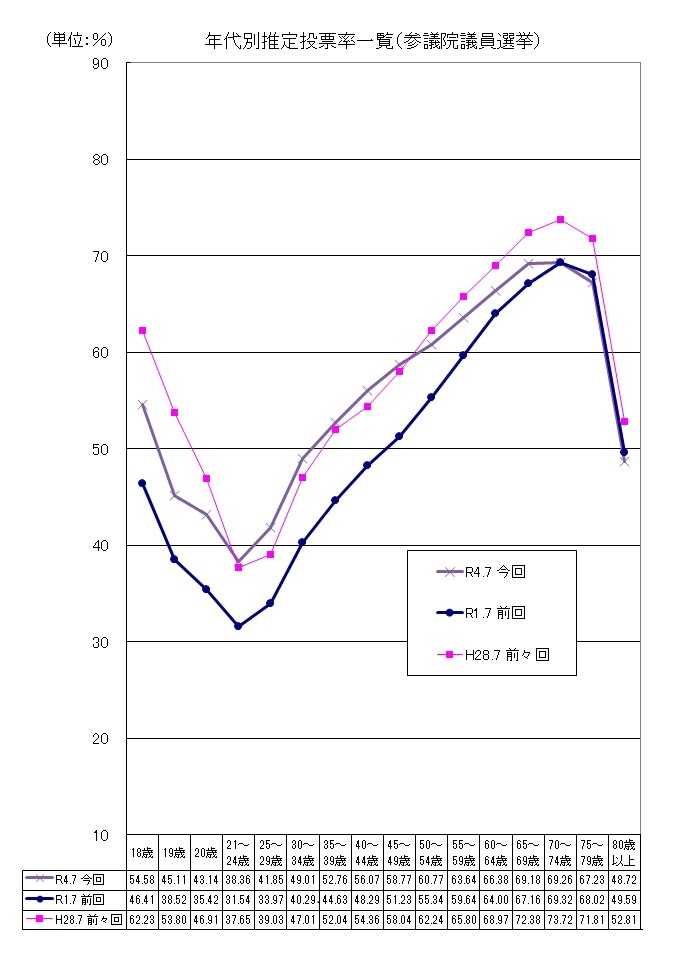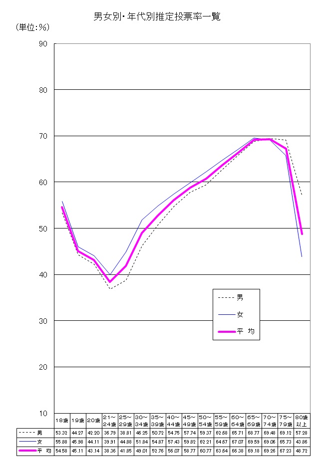 男女別・推定投票率一覧(参議院議員選挙)(csv形式:1KB)