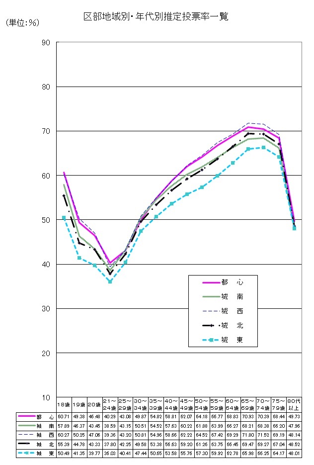 区部地域別・年代別選挙別推定投票率一覧(参議院議員選挙)(csv形式:1KB)