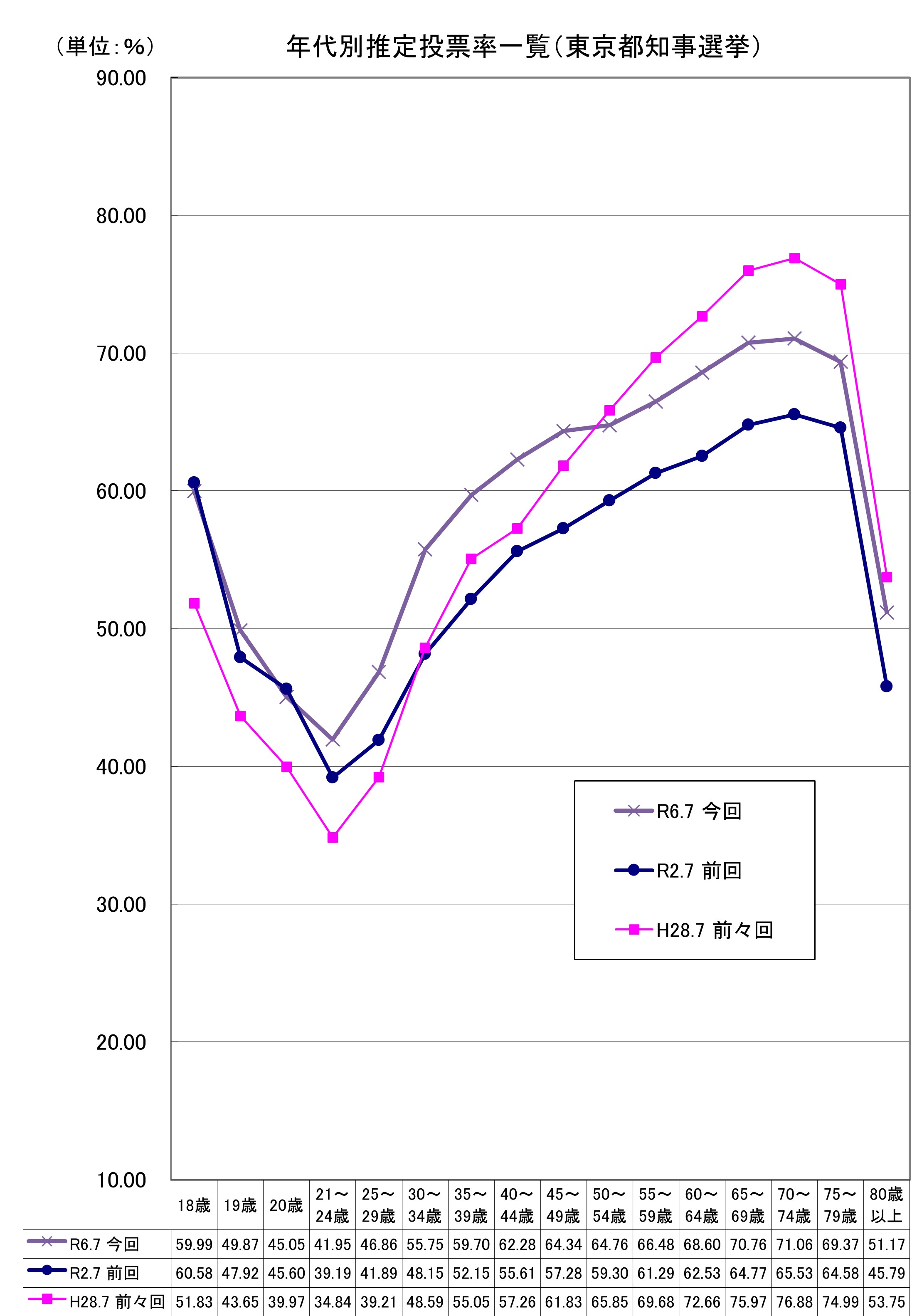 年代別推定投票率一覧(東京都知事選挙)(csv形式:951B)