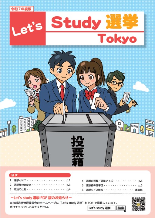 都内の中学校3年生向けに配布している選挙学習用冊子「Let's Study選挙」です。